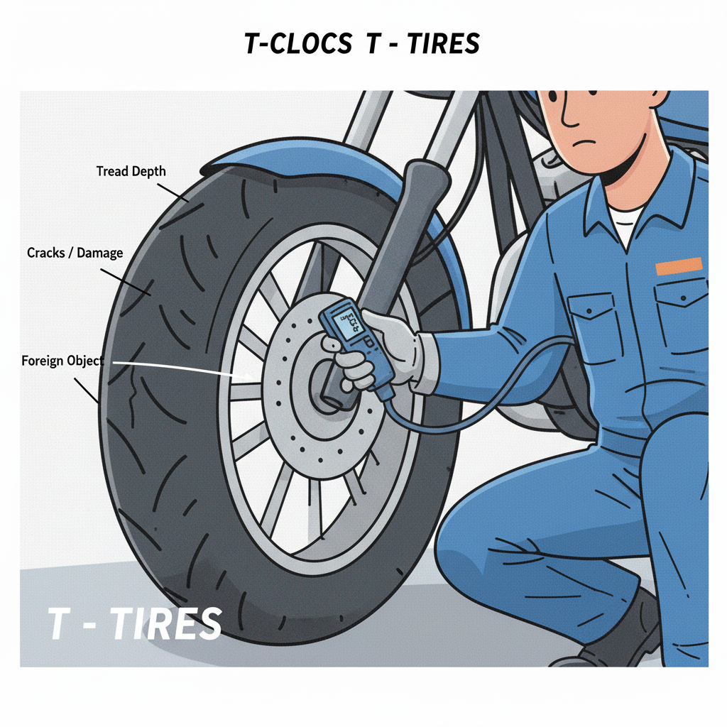 胎紋: 檢查胎紋深度是否足夠(通常不得低於輪胎上的磨耗指示點),以及是否有龜裂、割傷或嵌入異物(如釘子、碎石)。